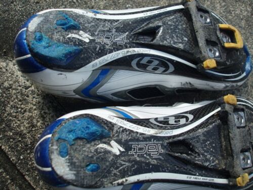 ロードバイクに乗った後、ビンディングシューズを陰干ししていたら踵のクッションが劣化して壊れているのに気付いた。 使っているのはスペシャライズドのEXPERT ROAD(2012年頃)だと思う。貰い物なので詳細は分からない。ダイヤルで締め上げる構造や靴底が…